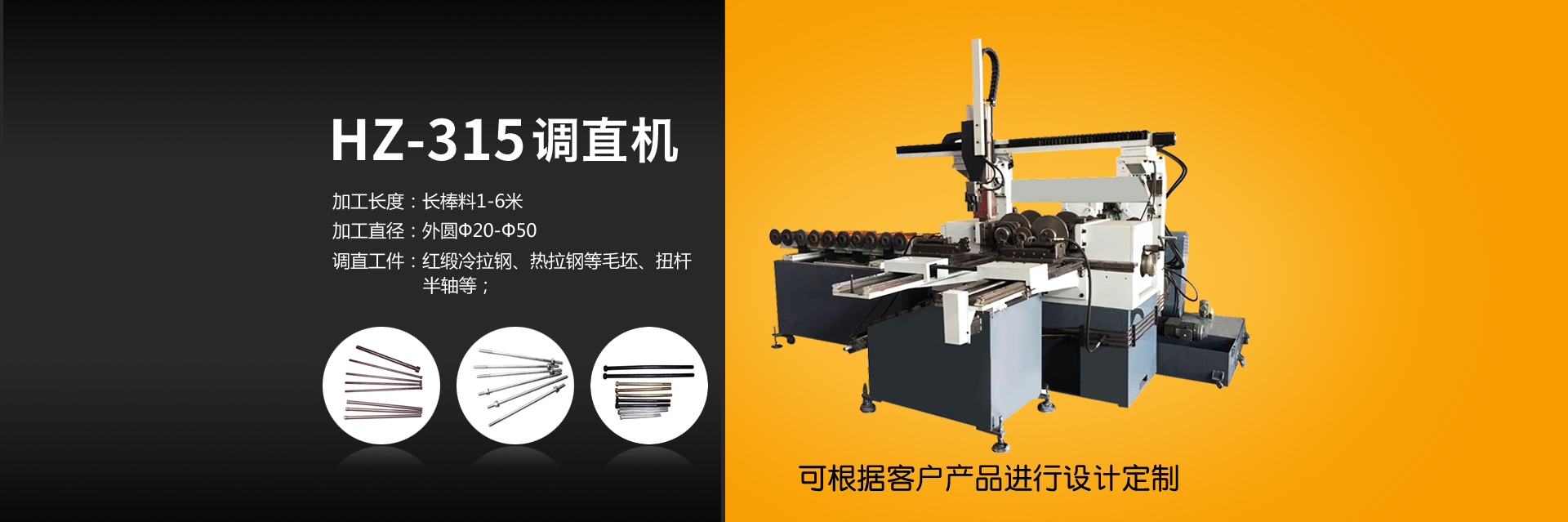 調(diào)直機(jī)專用于圓棒料毛坯或熱處理變形材料,通過雙曲線原理進(jìn)行擠壓達(dá)到調(diào)直效果。